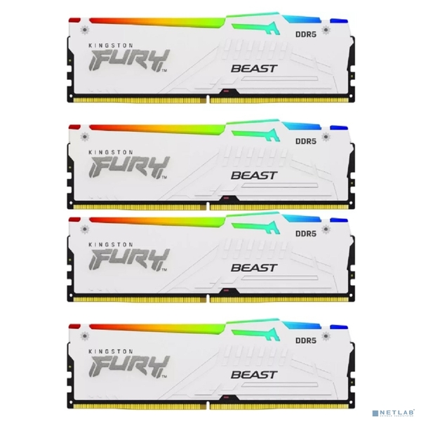 Оперативная память Память оперативная/ Kingston 128GB 5200MT/s DDR5 CL40 DIMM (Kit of 4) FURY Beast White RGB XMP