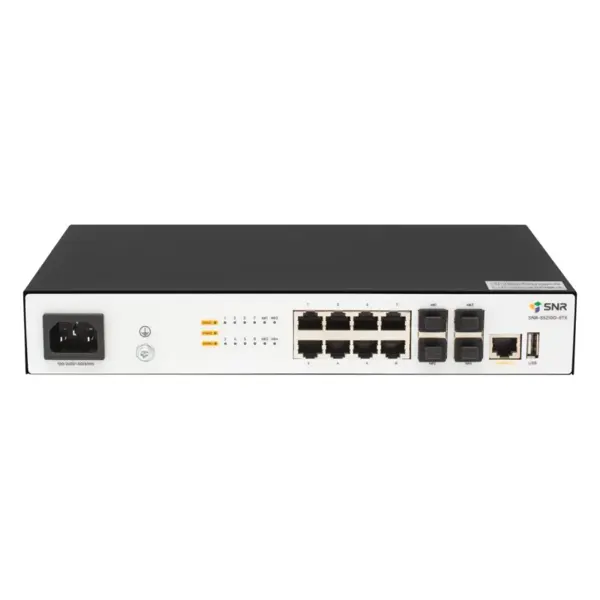 Управляемый коммутатор для рабочих групп SNR Управляемый коммутатор уровня 2+, 8 портов 10/100/1000Base-T, 4 порта 1/10G SFP+, встроенный БП ~220V AC