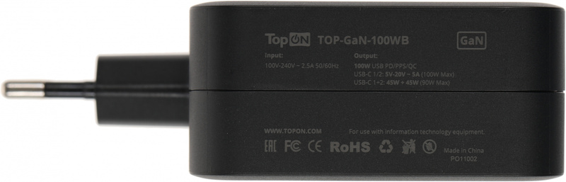 Блок питания TopON TOP-GaN-100WB автоматический 100W 5V-20V 5A 2xUSB от бытовой электросети LED индикатор
