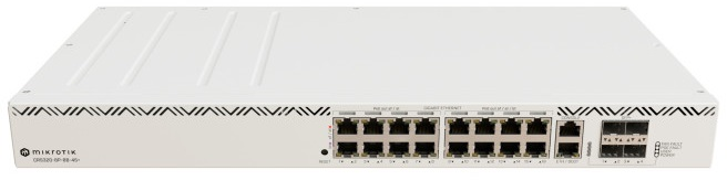 Коммутатор CRS320-8P-8B-4S+RM Cloud Router Switch with dual-core 800 MHz CPU, 256 MB RAM, 98DX226S switch chip, 17 x Gigabit Eth ports (8 x 802.3af/at, 8 x 802.3bt PoE-out), 4 x 10G SFP+ ports, RouterOS L5, 1U rackmount enclosure, 600W PSU