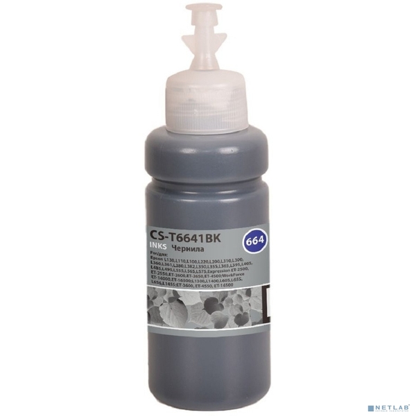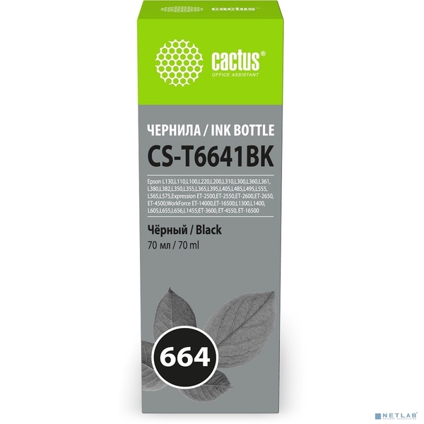 Чернила Чернила Cactus CS-T6641BK 664 черный 70мл для Epson L130,L110,L100,L220,L200,L310,L300,L360,L361,L380,L382,L350,L355,L365,L395,L405,L485,L495,L555,L565,L575,Expression ET-2500,ET-2550,ET-2600,ET-2650,ET-4500;WorkForce ET-14000,ET-16500;L1300,L1400,L605,L655,L656,L1455;ET-3600, ET-4550, ET-16500
