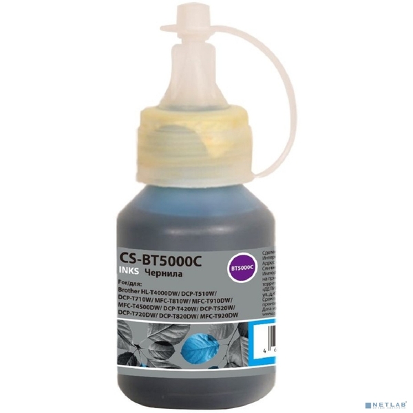 Чернила Чернила Cactus CS-BT5000C BT5000C голубой 48мл для Brother HL-T4000DW, DCP-T510W, DCP-T710W, MFC-T810W, MFC-T910DW, MFC-T4500DW, DCP-T420W, DCP-T520W, DCP-T720DW, DCP-T820DW, MFC-T920DW
