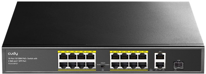 Неуправляемый коммутатор Коммутатор Cudy FS1018PS1 (L2) 16x100Мбит/с 2x1Гбит/с 1SFP 16PoE+ 200W неуправляемый