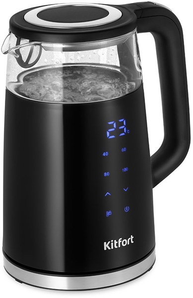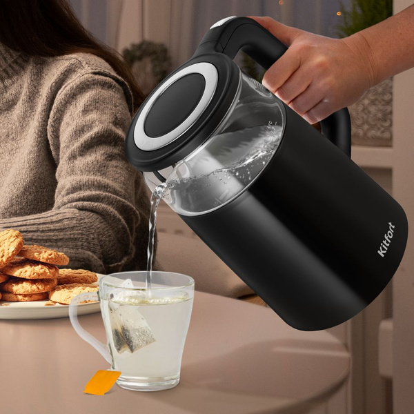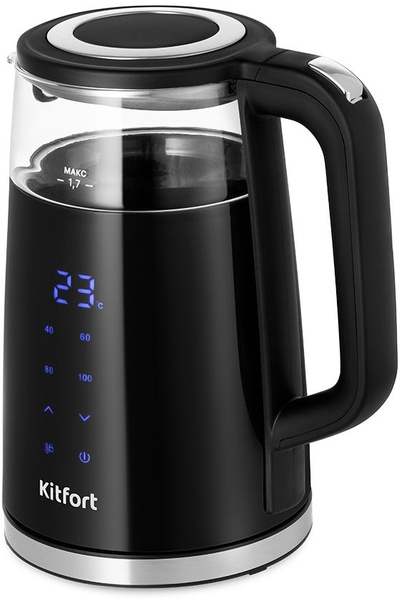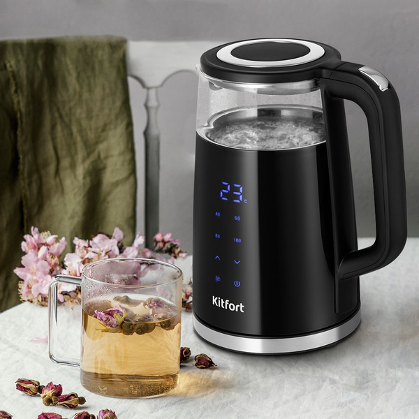 - Электрический чайник Kitfort КТ-6611 может не только вскипятить воду, но и нагреть её до температуры от 40 до 95°C. Ёмкость чайника 1,7 литров: этого хватит, чтобы приготовить горячие напитки на большую семью.