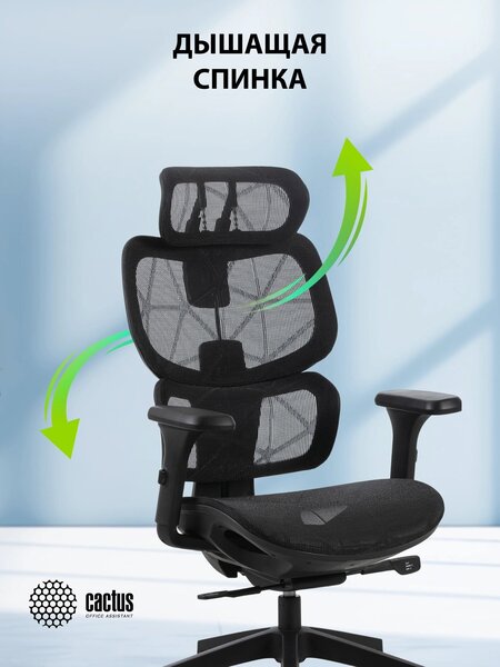 Кресло Cactus CS-MC555-BK черный сетка с подголов. крестов. пластик