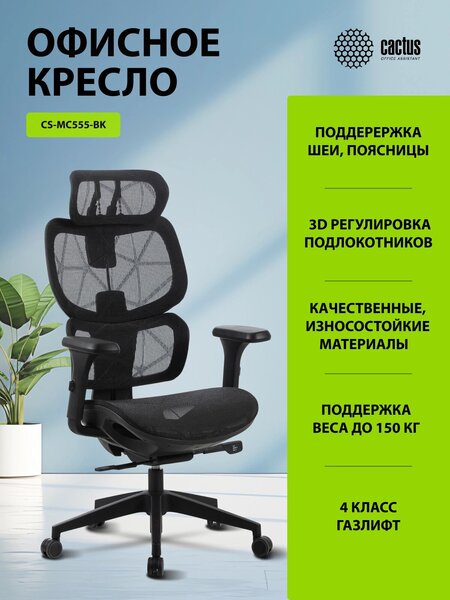 Кресло Cactus CS-MC555-BK черный сетка с подголов. крестов. пластик купить в интернет-магазине TPShop.Ru. Наличный и безналичный расчет, розничные и оптовые продажи. Самовывоз, доставка по Москве и МО, отправка во все регионы России.