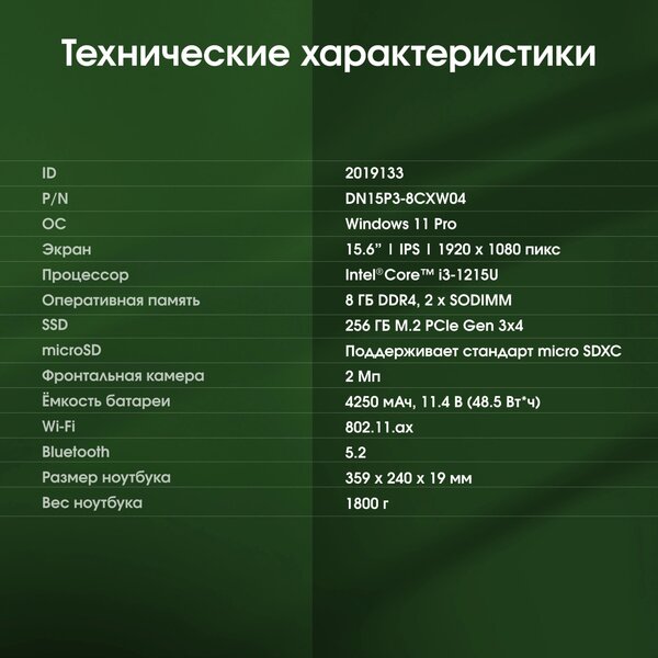 - Intel Core i3 1215U 1.2ГГц