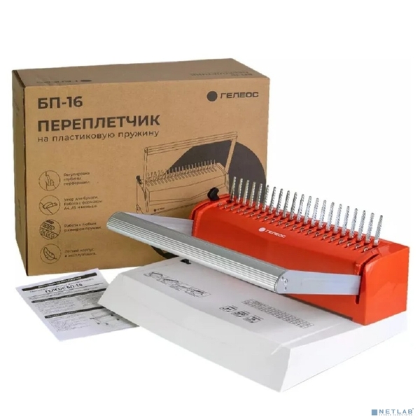Уничтожитель бумаг Переплетчик ГЕЛЕОС БП-16 бело-красный на пластиковую пружину, А4, ручная перфорация 16 листов, переплет макс до 500 л., глубина перфорации 2-3-4-5 мм купить в интернет-магазине TPShop.Ru. Наличный и безналичный расчет, розничные и оптовые продажи. Самовывоз, доставка по Москве и МО, отправка во все регионы России.