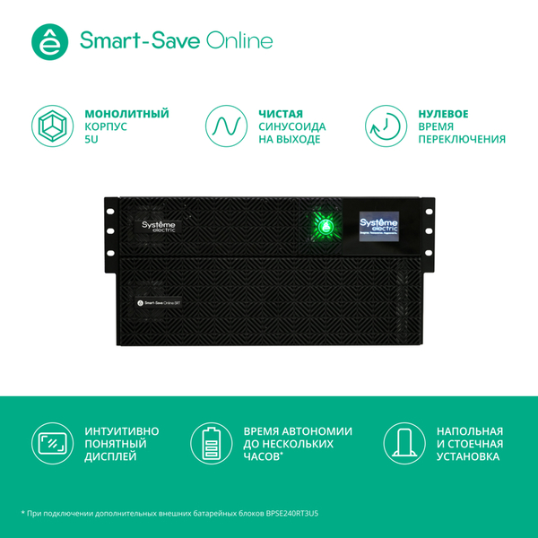 ИБП Systeme Electric Smart-Save Online SRT, 5000VA/5000W, On-Line, Extended-run, Rack 2U+3U(Tower convertible), LCD, 6xC13, 4xC19, SNMP Intelligent Slot, USB, RS-232, Pre-Inst. Web/SNMP купить в интернет-магазине TPShop.Ru. Наличный и безналичный расчет, розничные и оптовые продажи. Самовывоз, доставка по Москве и МО, отправка во все регионы России.