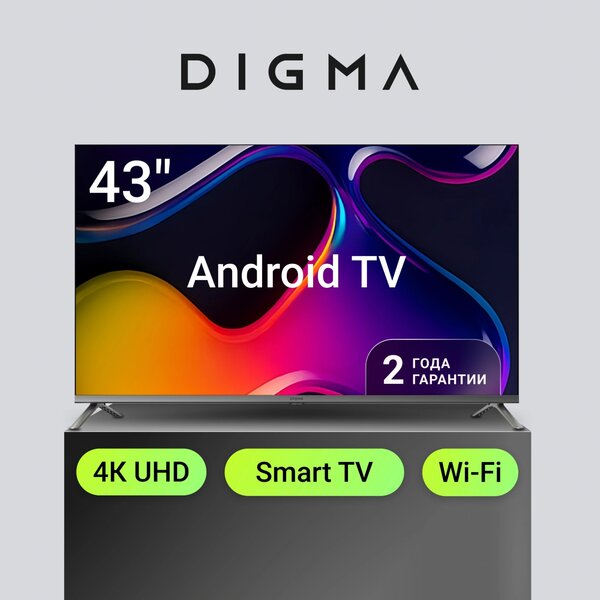 Телевизор Телевизор LED Digma 43" DM-LED43UBB41 Android TV Frameless Metal темно-серебристый/серый 4K Ultra HD 60Hz DVB-T DVB-T2 DVB-C DVB-S DVB-S2 USB WiFi Smart TV купить в интернет-магазине TPShop.Ru. Наличный и безналичный расчет, розничные и оптовые продажи. Самовывоз, доставка по Москве и МО, отправка во все регионы России.