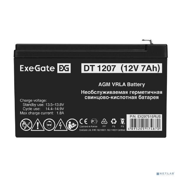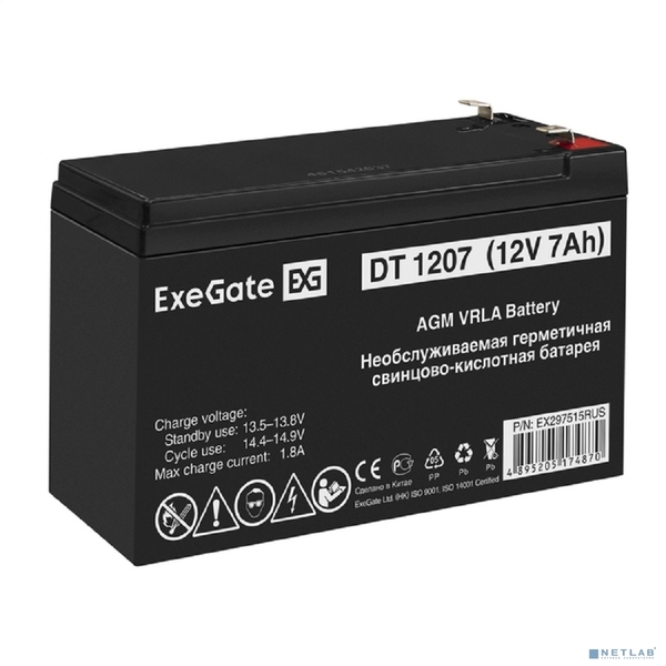 Аккумуляторная батарея Exegate EX297515RUS Аккумуляторная батарея DT 1207 (12V 7Ah, клеммы F2) купить в интернет-магазине TPShop.Ru. Наличный и безналичный расчет, розничные и оптовые продажи. Самовывоз, доставка по Москве и МО, отправка во все регионы России.