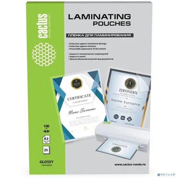 Пленка для ламинирования Cactus 100мкм A3 (25шт) глянцевая 426x303мм CS-LPGA310025 купить в интернет-магазине TPShop.Ru. Наличный и безналичный расчет, розничные и оптовые продажи. Самовывоз, доставка по Москве и МО, отправка во все регионы России.