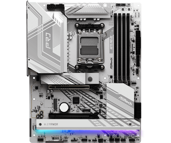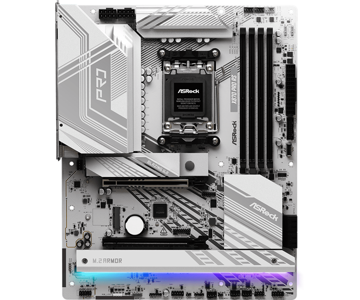 - ASROCK X870 PRO RS, AM5, X870, 4*DDR5, 4*SATA, 3*M.2, 6*USB 2.0, 4*USB 3.2, Type-C, 2*PCIx16, 1*M.2 (Key E), HDMI, ATX