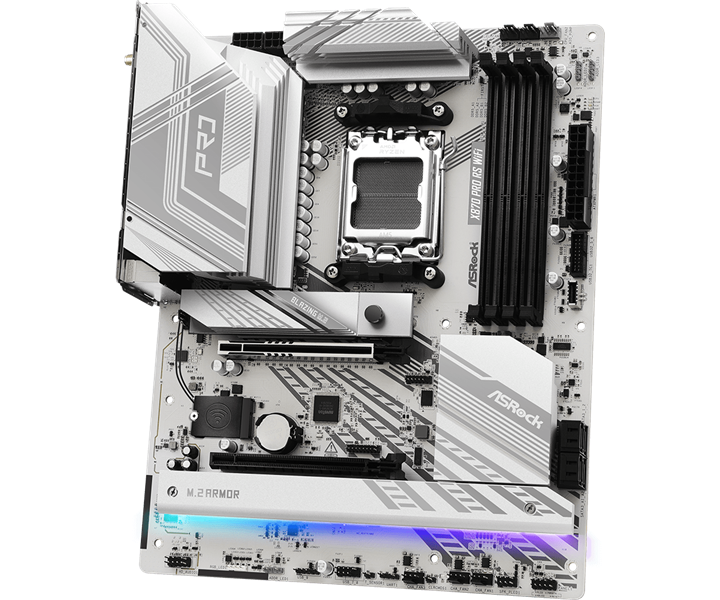 - ASROCK X870 PRO RS WIFI, AM5, X870, 4*DDR5, 4*SATA, 3*M.2, 6*USB 2.0, 4*USB 3.2, Type-C, 2*PCIx16, 1*M.2 (Key E), HDMI, ATX