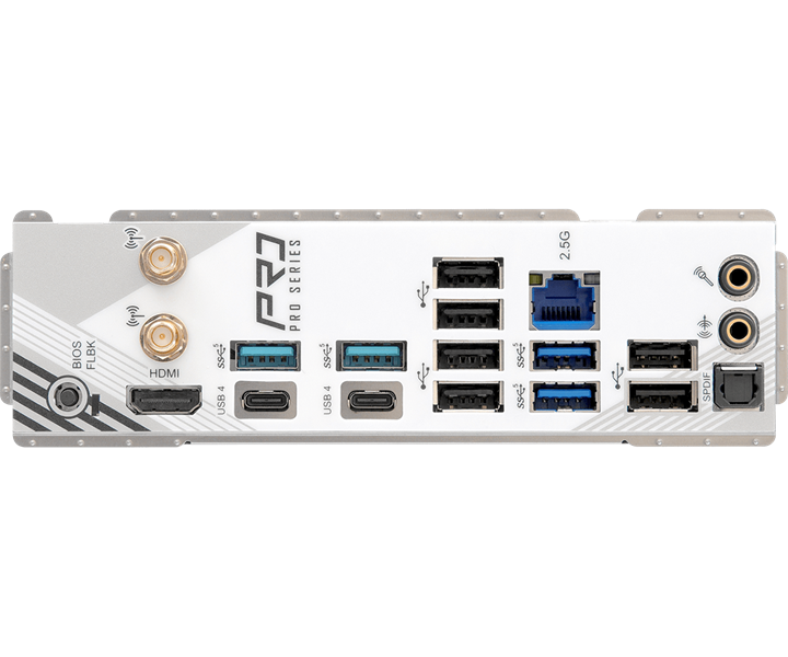 - 2хUSB4 Type-C, USB 3.2 Gen2x2 Type-C, 6хUSB 3.2 Gen1 Type-A, 9хUSB 2.0, HDMI, RJ-45, SPDIF, 2хAudio