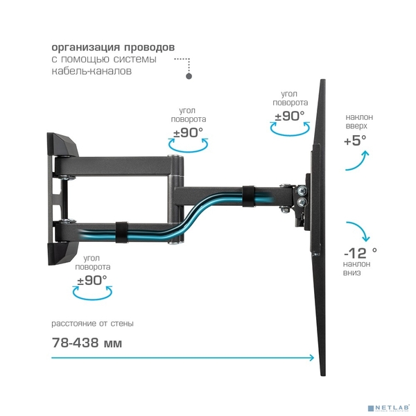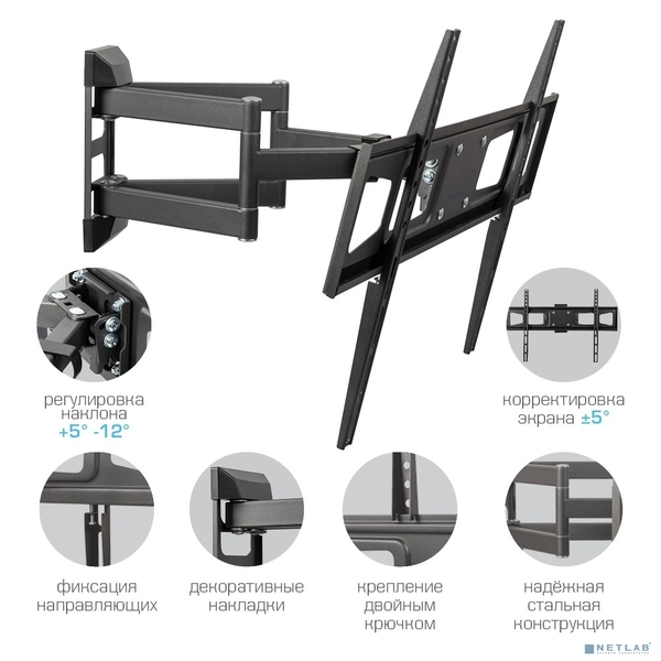 Кронштейн ONKRON 40-60" макс 400 х 600 наклон -5° / +15° поворот ±180° Макс нагрузка 68, 2 кг, от стены 110-711 мм