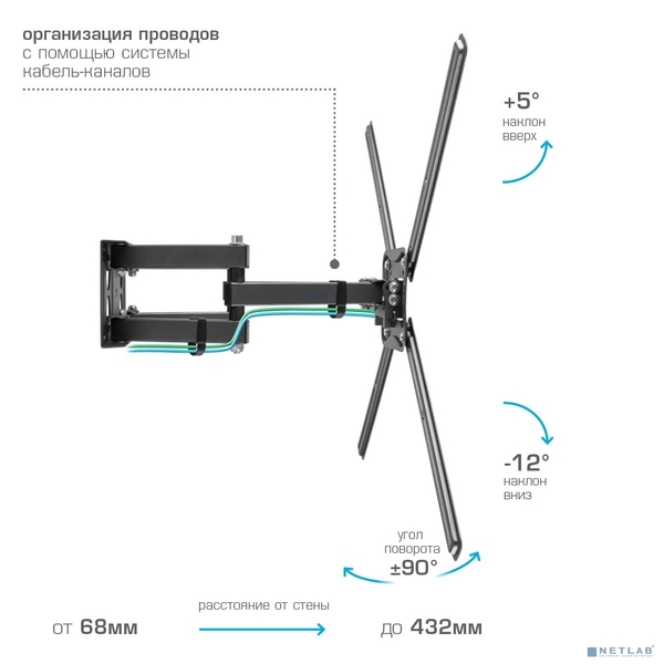 - Надежная стальная конструкция максимальная нагрузка до 50 кг, Универсальная система крепления, Легкий монтаж при помощи съемной монтажной пластины, Вращение экрана уникальная возможность вращения экрана на ±5° относительно стены