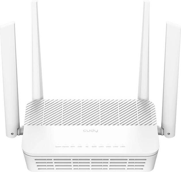 Точка доступа AX3000 2.5G Dual Band Wi-Fi 6 Mesh Router, Chipset MT7981BA+MT7976CN+MT7531AE+RTL8221B, 802.11ax/ac/a/b/g/n, 2402Mbps at 5GHz + 574Mbps at 2.4GHz, 1 x 2.5G Port , 4 x 10/100/1000Mbps Ports, 4 x 5dBi fixed antennas, WiFi router/AP/ Repeater/WISP Mode, PPTP/L2TP/OpenVPN/WireGuard, MU-MIMO, Guest network, WPS, DDNS, IPv6, IPTV, WOL, WPA3, TR069/TR098/TR111/TR181, Cudy Mesh, Cudy APP
