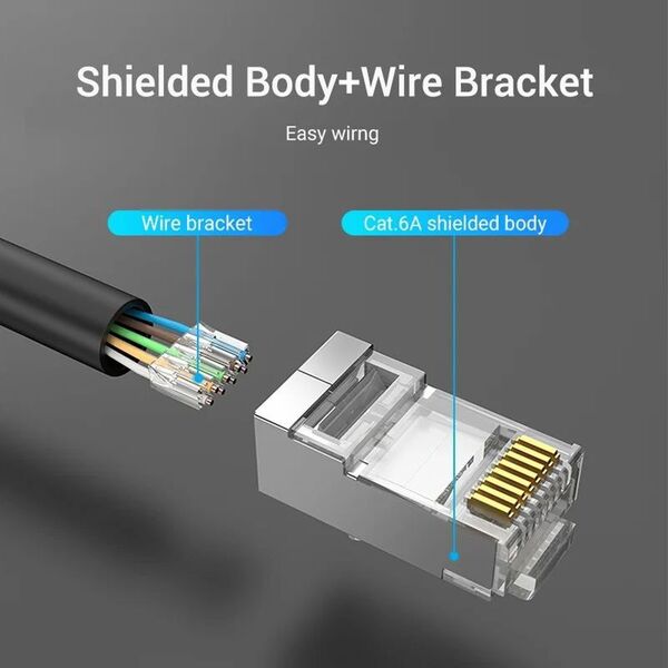 Коннектор Vention RJ45 (8p8c), FTP, cat. 6A, под витую пару, экранированный (50шт.) купить в интернет-магазине TPShop.Ru. Наличный и безналичный расчет, розничные и оптовые продажи. Самовывоз, доставка по Москве и МО, отправка во все регионы России.