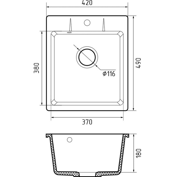 GRANFEST Мойка URBAN 242 1-чаша 420*490мм, монтаж: врезной, материал: кварц, цвет: черный