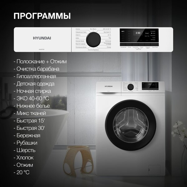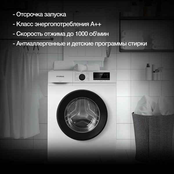 Стиральная машина Hyundai WME6008 класс: A++ загр.фронтальная макс.:6кг белый инвертер