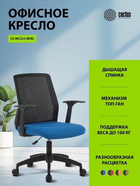 Кресло Cactus CS-MC222-BKBL черный сиденье темно-синий купить в интернет-магазине TPShop.Ru. Наличный и безналичный расчет, розничные и оптовые продажи. Самовывоз, доставка по Москве и МО, отправка во все регионы России.