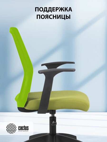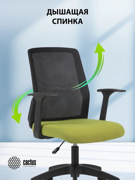 Кресло Cactus CS-MC222-BKGN черный сиденье салатовый сетка/ткань низк.спин. крестов. пластик пластик черный
