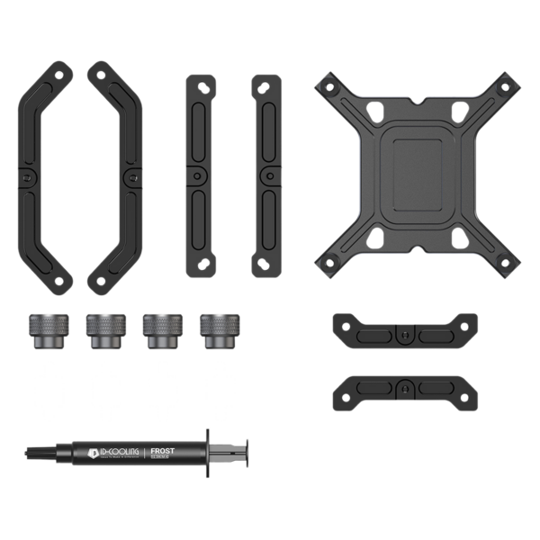 - СЖО, 2 вентилятора, крепежный комплект, разветвитель питания вентиляторов, термопаста, документация
