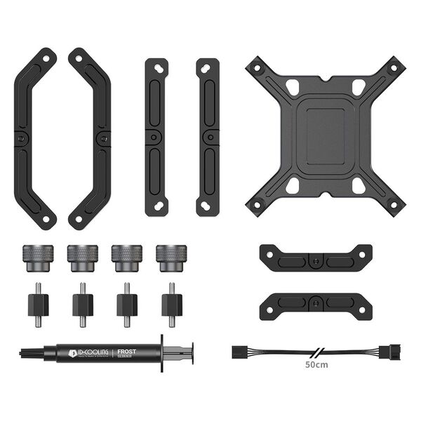 - СЖО, 2 вентилятора, крепежный комплект, разветвитель питания вентиляторов, термопаста, документация