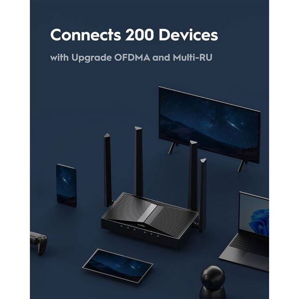 Маршрутизатор Маршрутизатор/ BE3600 2.5G Dual Band Wi-Fi 7 Mesh Router, Chipset Broadcom, 802.11be/ax/ac/a/b/g/n, 2882Mbps at 5GHz + 688Mbps at 2.4GHz, 1 x 2.5Gbps WAN Port, 4 x 10/100/1000Mbps Ports, 4 x 5dBi fixed antennas, WiFi router/AP/ Repeater/WISP Mode, PPTP/L2TP/OpenVPN/WireGuard, MLO, MU-MIMO, Guest network, WPS, DDNS, IPv6, IPTV, WOL, WPA3, TR069/TR098/TR111/TR181, Cudy APP