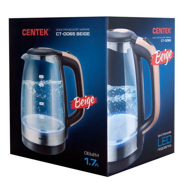 Чайник Centek CT-0065 <Beige> стекло, 1.7л 2200Вт, LED-подсветка, мерная шкала, защита от вкл б/воды купить в интернет-магазине TPShop.Ru. Наличный и безналичный расчет, розничные и оптовые продажи. Самовывоз, доставка по Москве и МО, отправка во все регионы России.