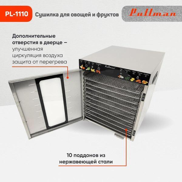 Сушка Сушилка для овощей и фруктов Pullman PL-1110, 10 уровней, 21 поддонов, 800 Вт купить в интернет-магазине TPShop.Ru. Наличный и безналичный расчет, розничные и оптовые продажи. Самовывоз, доставка по Москве и МО, отправка во все регионы России.