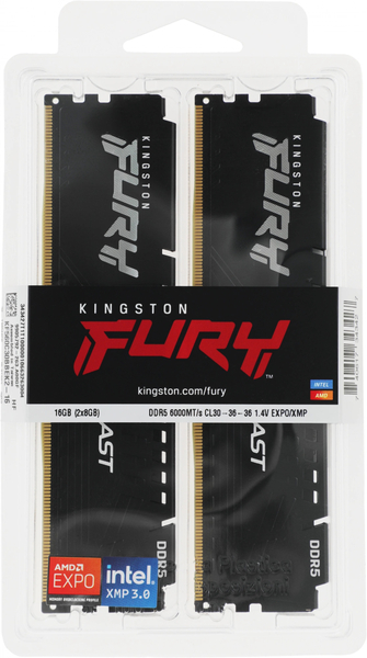 Оперативная память Модуль памяти DDR 5 DIMM 16Gb PC48000, 6000Mhz, Kingston FURY Beast Black EXPO CL30 (Kit of 2) (KF560C30BBEK2-16) (retail)