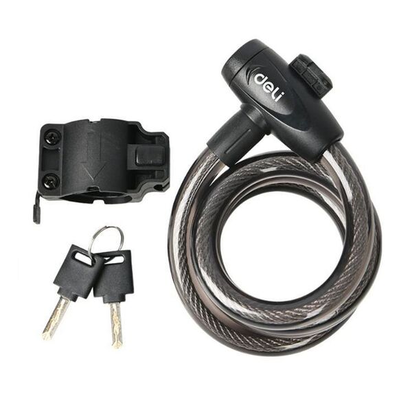 Замок Deli Замок тросовый велосипедный Deli DL508062 12*1000 мм, два ключа, держатель на раму