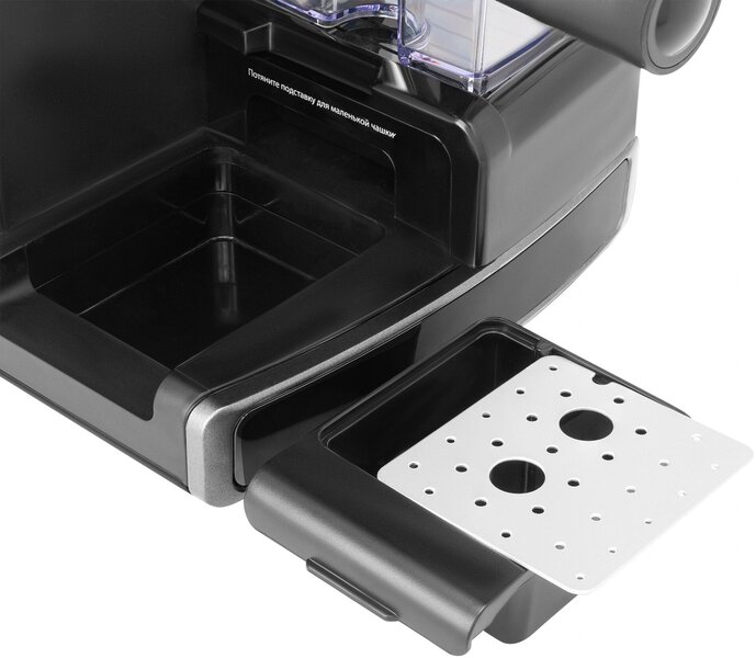 - капучинатор, панель для подогрева чашек, съемный поддон для капель, съемный резервуар для воды, темпер