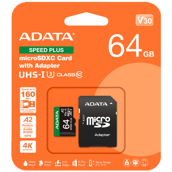 Флеш карта microSD A-DATA 64GB microSDXC Class 10 UHS-I U3 V30 A2 160/140 MB/s (SD адаптер) купить в интернет-магазине TPShop.Ru. Наличный и безналичный расчет, розничные и оптовые продажи. Самовывоз, доставка по Москве и МО, отправка во все регионы России.