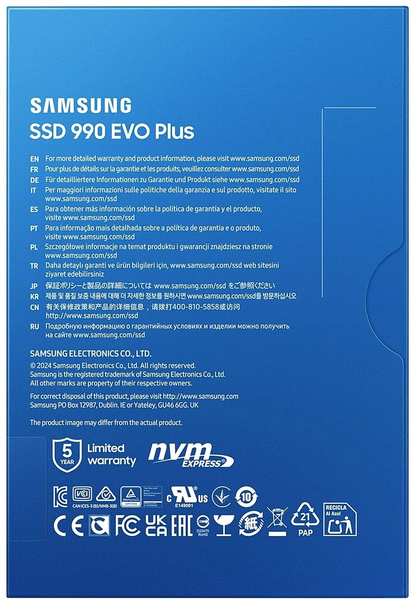 Samsung MZ-V9S1T0BW 990 EVO Plus, M.2, 1Tb, PCI-E 5.0 x2, V-NAND TLC [R / W - 7150 / 6300 MB / s]
