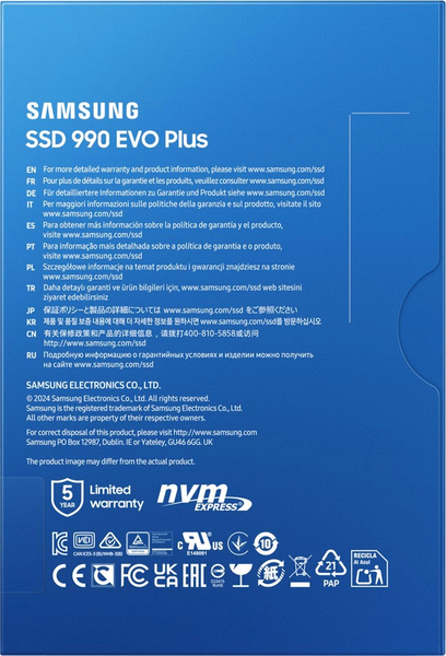 SSD M.2 (PCI-E NVMe 2.0 Gen 4.0 x4) 4Tb Samsung 990 EVO plus (R6300/W7250MB/s) 1year