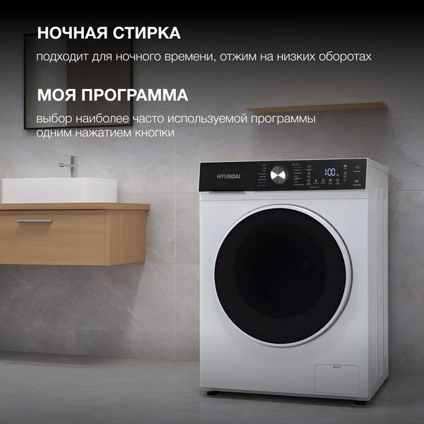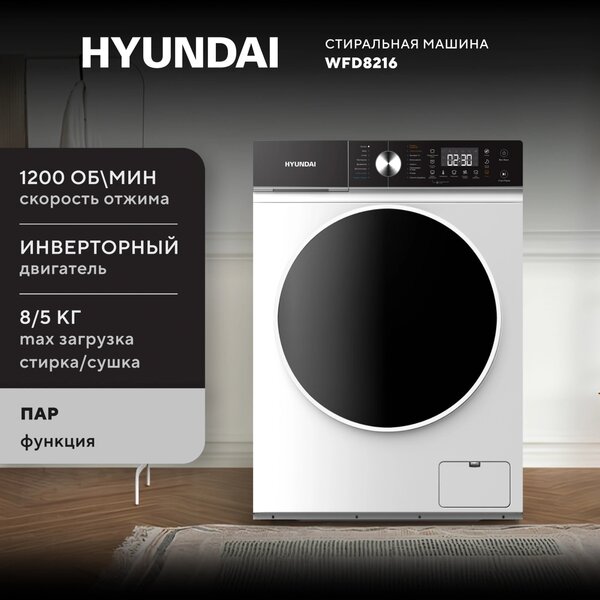 Стиральная машина Hyundai WFD8216 класс: A+++ загр.фронтальная макс.:8кг (с сушкой) белый инвертер