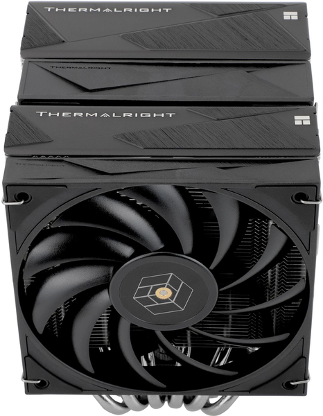 Кулер для процессора/ Thermalright Royal Knight 120 (4-pin PWM, 156mm, Ni/Cu, 6x6mm, 2x120mm, 80.45CFM/56.36CFM, 29.4dBA/28.4dBA, 2150RPM/1900RPM, S: 1200, 1700, 1851, 2011, 2066, 115X, AM4, AM5, black)
