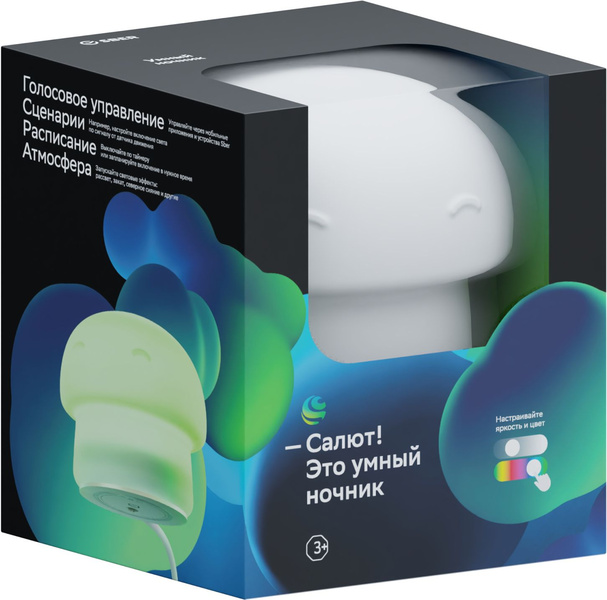 - Умный ночник Sber в форме грибочка красиво светится в темноте и стильно выглядит. Ваши дети будут просыпаться в удовольствие. Регулируйте яркость, температуру цвета, выбирайте любой из 16 млн цветов. Удалённо включайте ночник со смартфона и выключайте по таймеру.