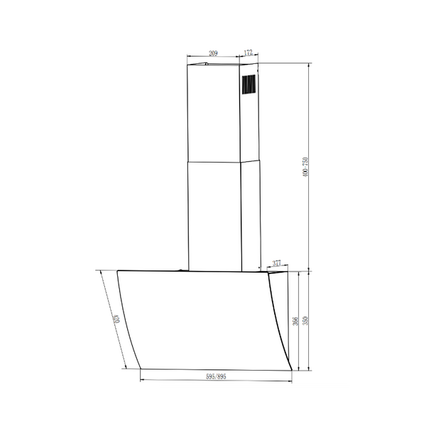 GOOD, Кухонная вытяжка ELIKOR КВ WAVE 50 BK, наклонная, 50 см, 750 м3/ч, черный