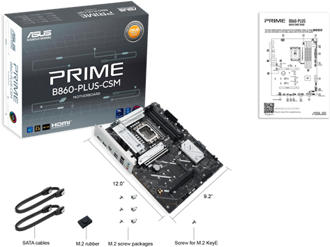 - ASUS PRIME B860-PLUS-CSM, LGA1851, B860, 4*DDR5, 4*SATA, 2*M.2, 3*USB 3.2, 4*USB 2.0, Type-C, 5*PCIx16, DP+HDMI, ATX; 90MB1KA0-M0EAYC