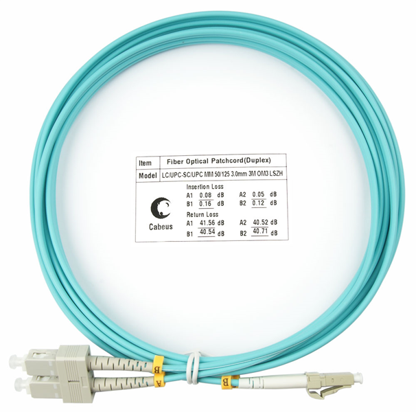 - Cabeus FOP-50-LC-SC-3m Шнур оптический duplex LC-SC 50/125 mm OM3 3м LSZH
