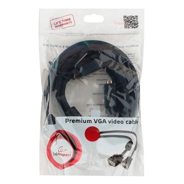 Патчкорд Кабель Cablexpert Кабель VGA Pro Cablexpert CC-PVGA-6 черный, 1.8м, 15M/15M, экран, феррит. кольца, пакет