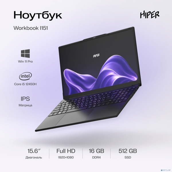 Ноутбук Ноутбук 15.6" IPS FHD HIPER WORKBOOK black (Core i5 12450H/16Gb/512Gb SSD/VGA int/W11Pro (FWBC151-I512HR16N5FABWPG) купить в интернет-магазине TPShop.Ru. Наличный и безналичный расчет, розничные и оптовые продажи. Самовывоз, доставка по Москве и МО, отправка во все регионы России.