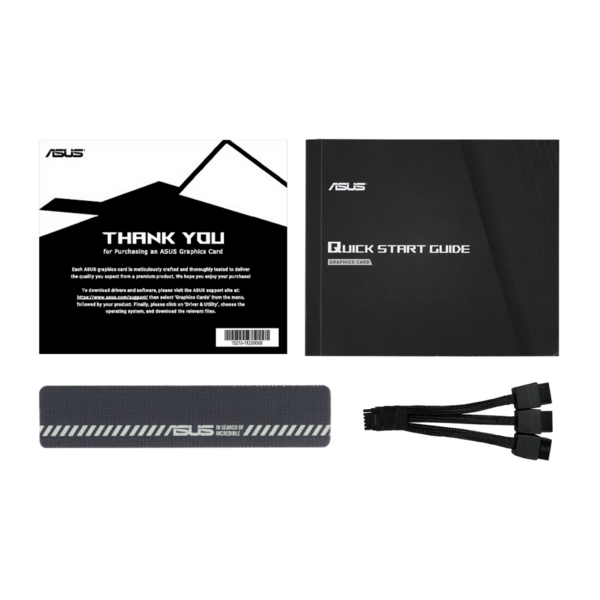 - Видеокарта, кабель-адаптер питания, держатель видеокарты (опция), документация