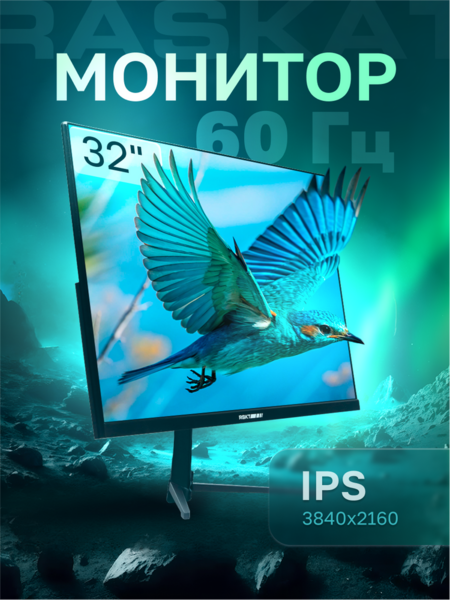 Монитор Монитор Raskat 32" I32U6D (IPS, 3840×2160, HDMI+DP+Audio output, 5 ms, 178°/178°, 1000:1, 60Hz, Black) купить в интернет-магазине TPShop.Ru. Наличный и безналичный расчет, розничные и оптовые продажи. Самовывоз, доставка по Москве и МО, отправка во все регионы России.