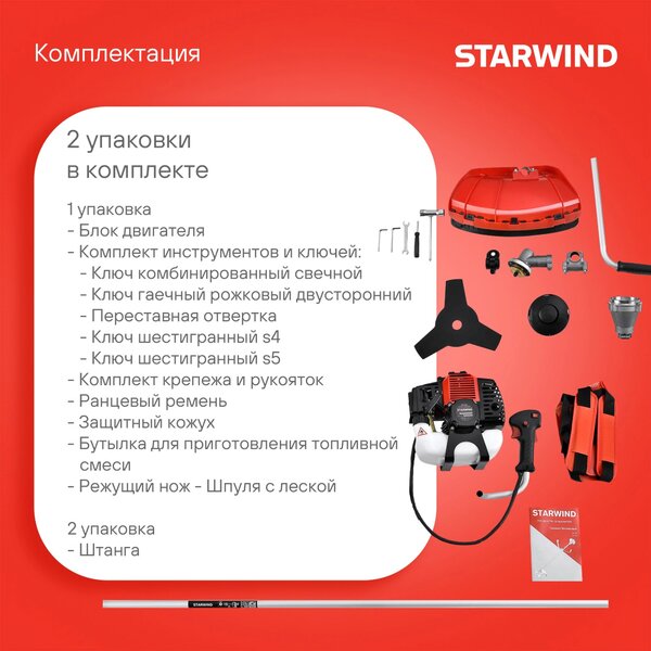 Триммер бензиновый Starwind GT-33 800Вт 1.1л.с. реж.эл.:леска/нож
