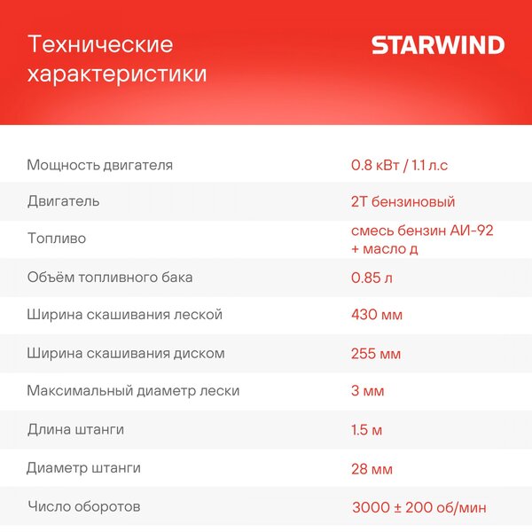 Триммер бензиновый Starwind GT-33 800Вт 1.1л.с. реж.эл.:леска/нож купить в интернет-магазине TPShop.Ru. Наличный и безналичный расчет, розничные и оптовые продажи. Самовывоз, доставка по Москве и МО, отправка во все регионы России.